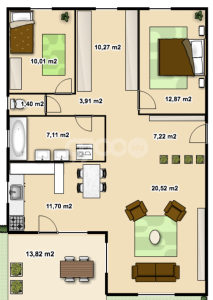 - Terasz területe: 10.00 m2