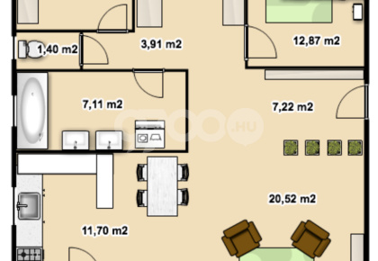 - 93 m², nappali + 3 szobás
