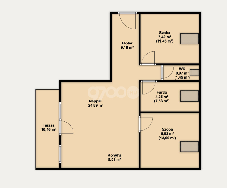 69 900 000,- FtSzobák: 3 Lakóterület: 74.00 m2 Erkély/terasz: 10 m2
