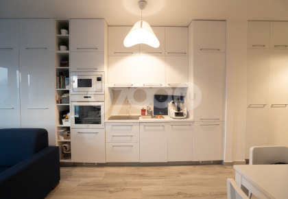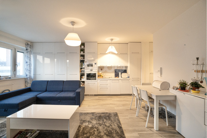 A lakás 2. emeleti elhelyezkedésű, 61 m²-es, melyhez egy közel 9 m²-es terasz tartozik. A központi helyiséget képező, tágas nappali-étkező-konyhából nyílnak a hálószobák, a fürdő-wc pedig az előszobából közelíthető meg. Modern és helykihasználás szempontjából is praktikusan kialakított gardróbszekrény, a gépesített konyhabútor és az egyéb helyiségekben található beépített bútorzat teljes harmóniában áll egymással.