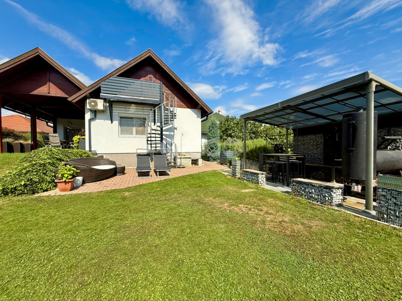 A kertben került kialakításra egy tökéletesen megtervezett és felszerelt grillterasz, amely szintén a közösségi élet remek színtere lehet.
