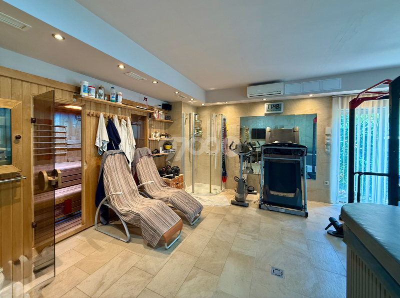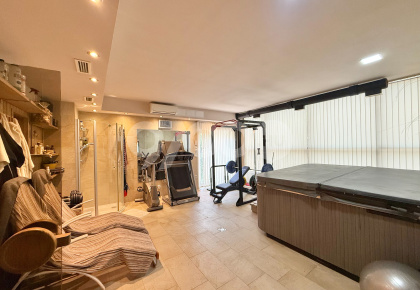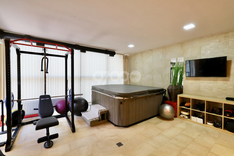 KÖZÖSSÉGI TEREK: Egy 30 m²-es helyiségben található a konditerem, jacuzzi és a 4 személyes szauna, tusolóval.