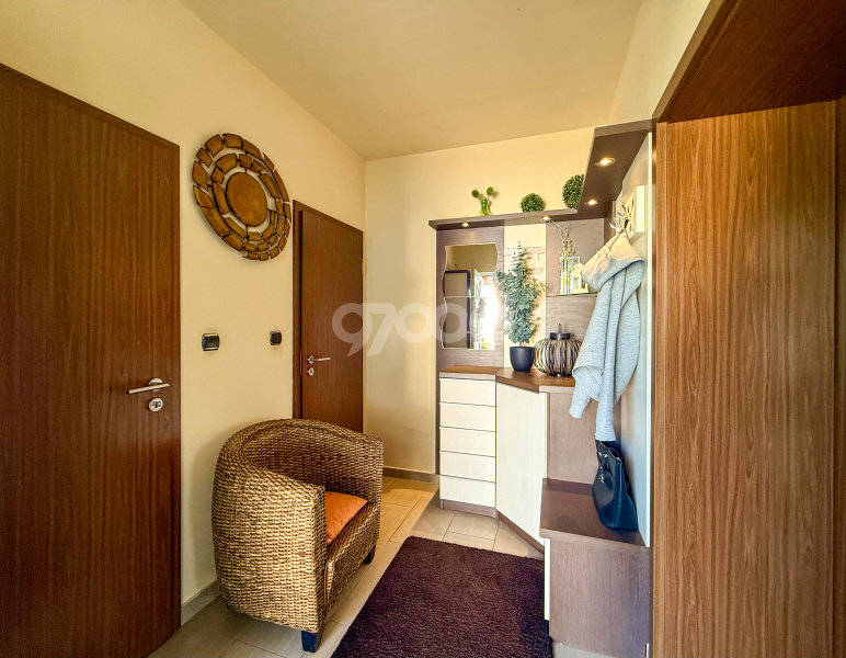 Az említett helyiségeken kívül háztartási helyiség, kamra, vendég WC, több kisebb tárolóhelyiség, beépített szekrények és kényelmes méretű közlekedők teszik élhetővé az ingatlant. A kert felőli lépcsőről megközelíthető padlástér könnyíti még a tárolást.