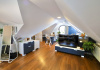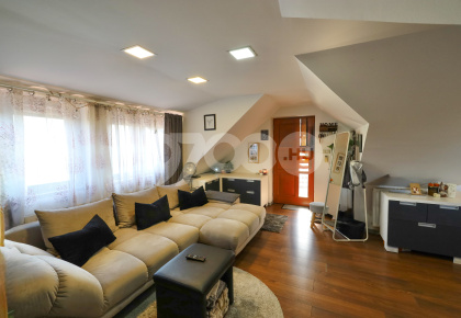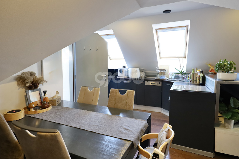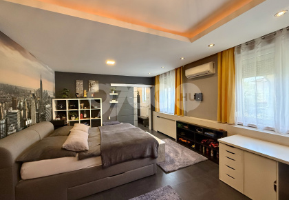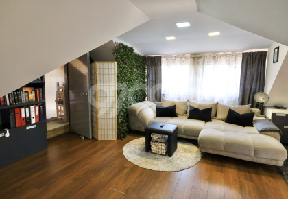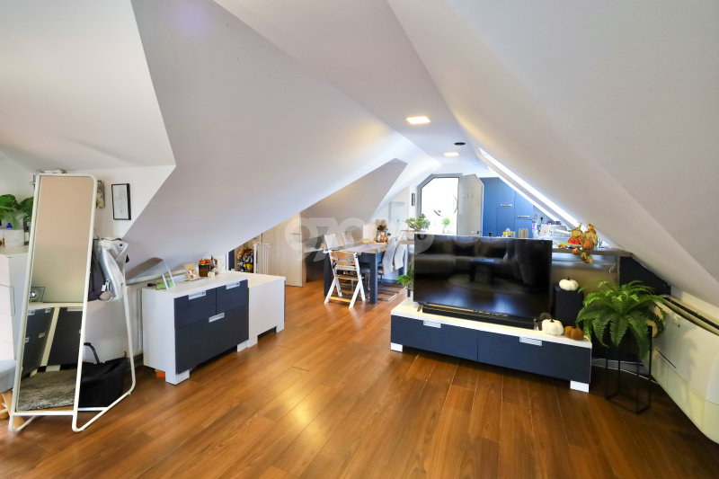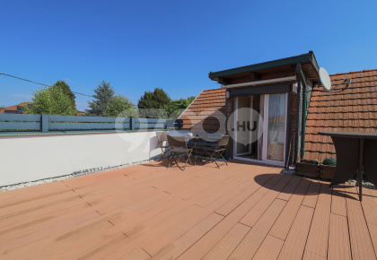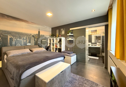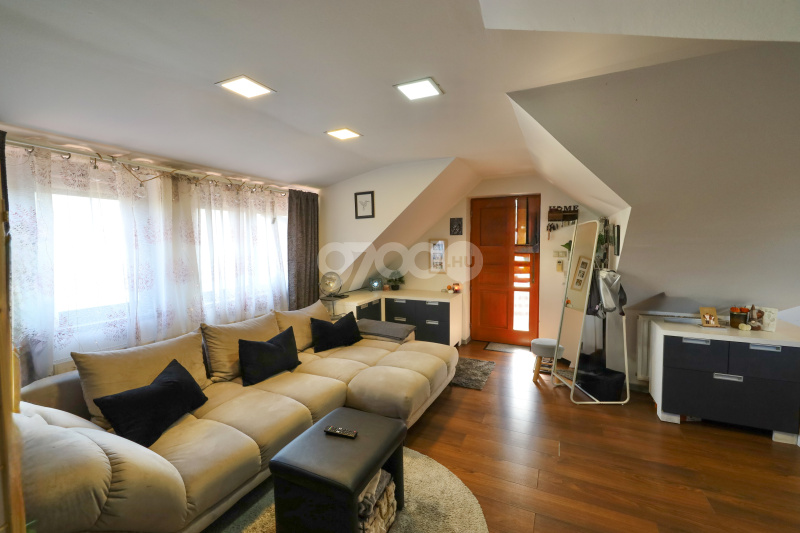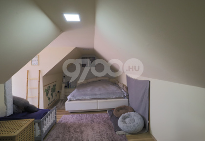 AZ INGATLAN EGYEDISÉGE a ház első részének tetőterében kialakított, teljesen elkülönített, saját bejáratú lakóegységben rejlik. Jelenleg egy nappali - konyha - étkezős + 2 hálószobás lakásként funkcionál, melyben található egy fürdőszoba WC-vel, valamint egy, a szobából nyíló napfényes privát 30 m²-es tetőterasz!