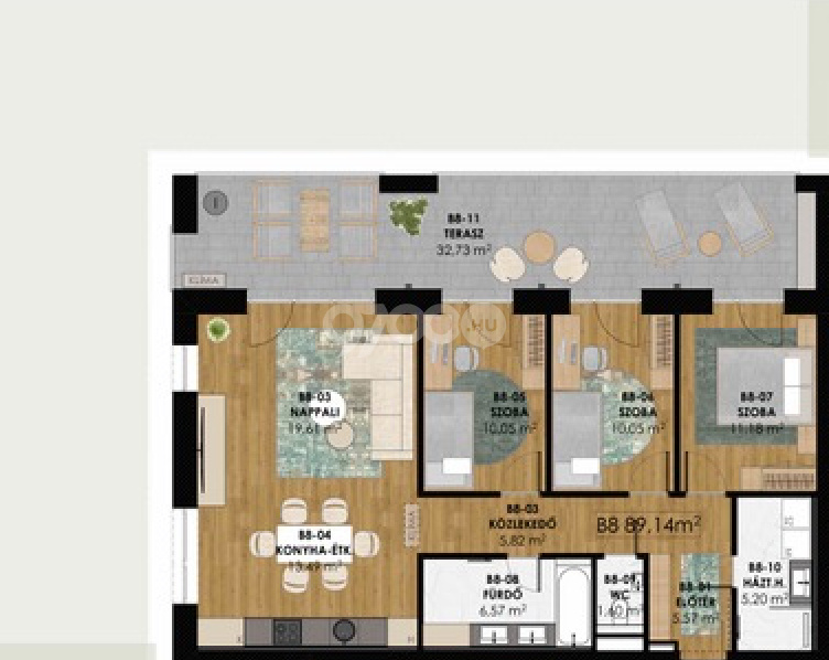 Szobák: 4 Lakóterület: 89.00 m2 Erkély/terasz: 33 m295 990 000,- Ft