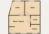 - 45 m², melyben nappali-étkező, konyha és 2 szoba került kialakításra. A fürdő és WC egy helyiségben helyezkedik.