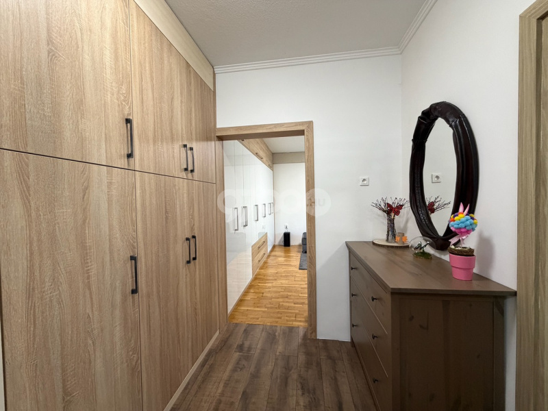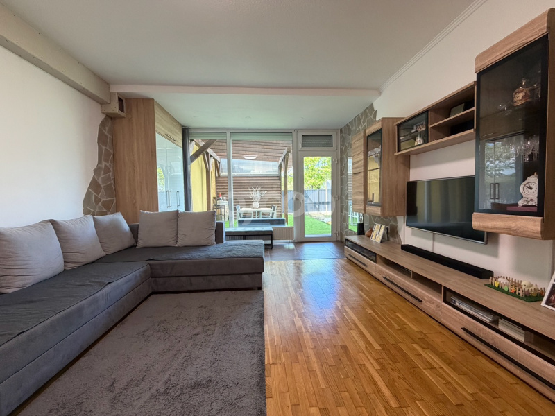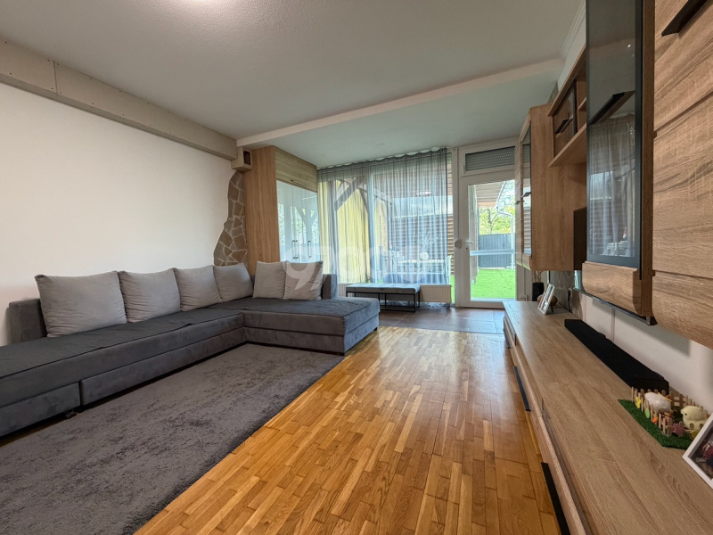 Szombathely oladi városrészén, közel a város északi elkerülő útjához eladó földszinti lakás, saját, 100 m²-es kertkapcsolattal.