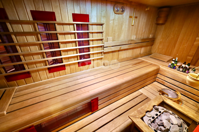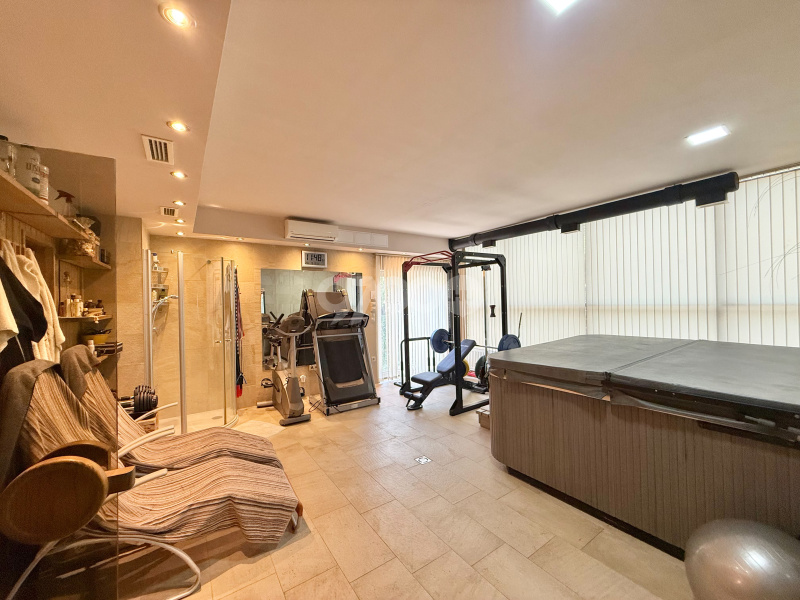 KÖZÖSSÉGI TEREK: Egy 30 m²-es helyiségben található a konditerem, jacuzzi és a 4 személyes szauna, tusolóval.