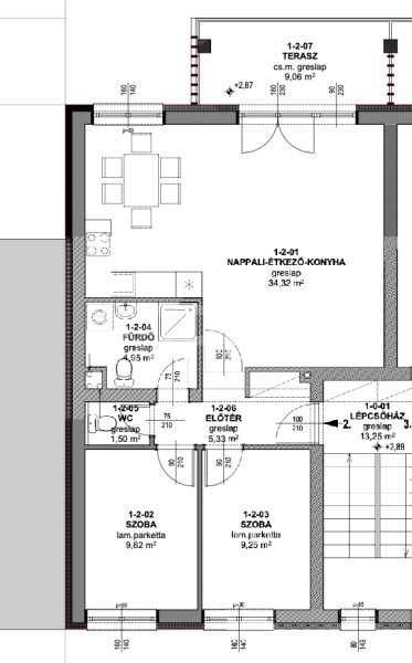 - nappali-étkező-konyha + 2 szoba elosztású.