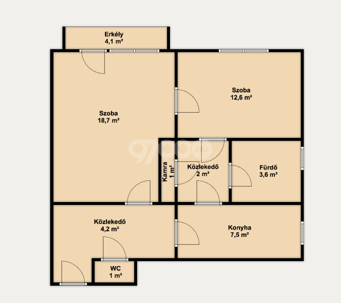 - 53 m²-es erkélyes lakás, melyben 2 szoba, konyha, fürdő, külön WC és egy kis kamra került kialakításra. A szobák egymásból nyílnak és külön-külön is megközelíthetők.